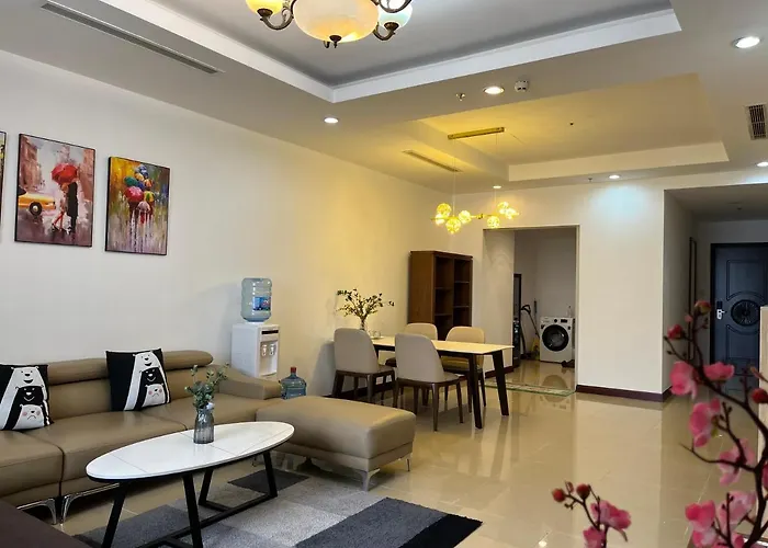 105m²のVinhomes Royal City Luxury Apartment 2 Br ハノイ市は、ヴァンパールランド ウォーターパーク ロイヤルシティーから歩いてわずか6分で、ハノイ空港から30キロメートルの場所にあります。 お客様の快適な滞在のために、WiFiと駐車場を用意しています。